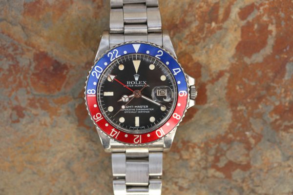 Up for grabs is a Rolex GMT-Master in steel