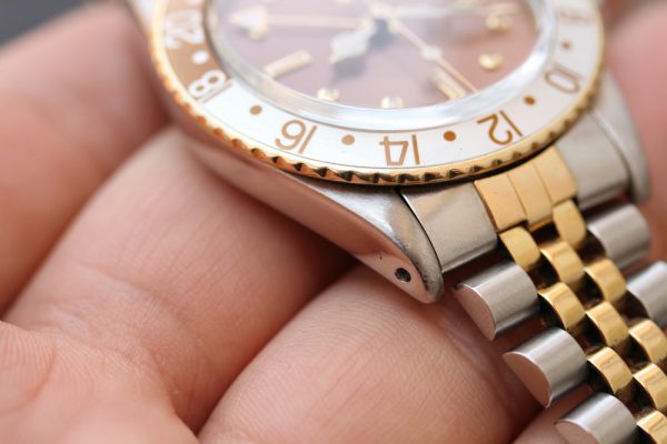 Up for grabs is a Rolex GMT-Master in steel and gold