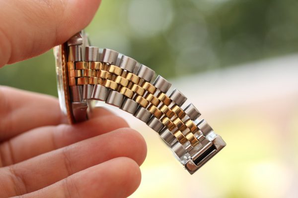 Bracelet is a Rolex 62523 jubilee with 455 ends, shows stretch from use and stamped K2 date code.