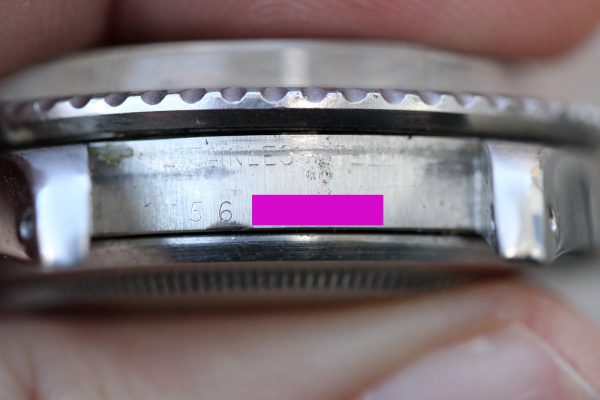 Excellent vintage condition case has been previously polished, but retains chamfers and strong crown guards. Serial and reference numbers are fully intact and clearly visible.