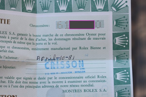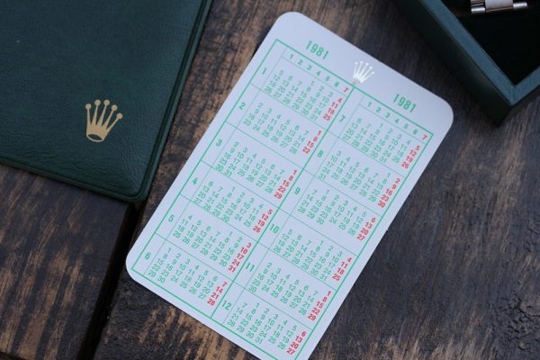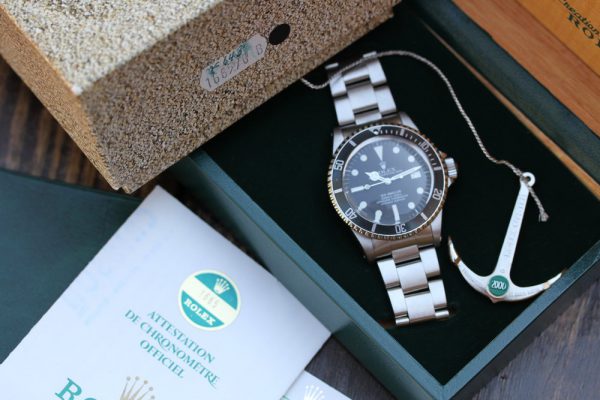Watch comes complete with Rolex boxes with “1665” sticker on outside, Rolex calendar from 1981 (the year watch was purchased new), punched papers with AD stamp and date, original Sea-Dweller anchor and wallet.