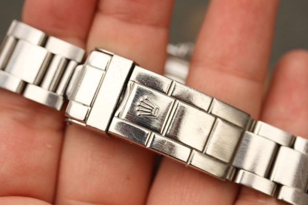 Bracelet is a Rolex 93150 with 11 links, 580 ends, diver’s extension, I date code and light stretch from use.