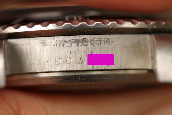 Excellent vintage condition case is clearly original and unpolished with original chamfers and factory finishes. Serial and reference numbers are clearly intact and fully visible.