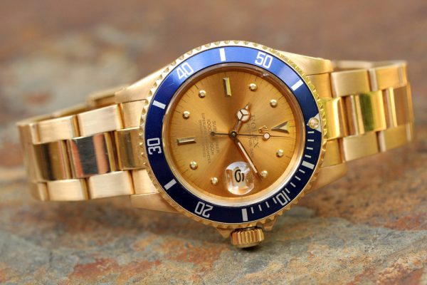 Up for grabs is a Rolex Submariner Date in 18kt yellow gold