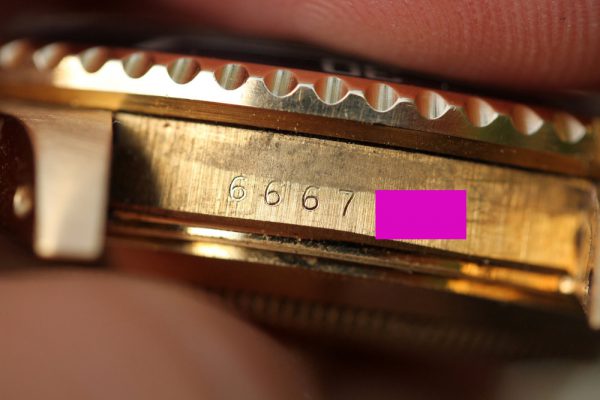 Excellent vintage condition case with thick and even lugs and crown guards. Serial and reference numbers are very crisp and fully intact, without any end-link damage.