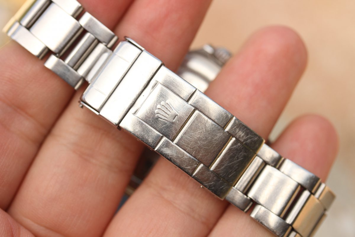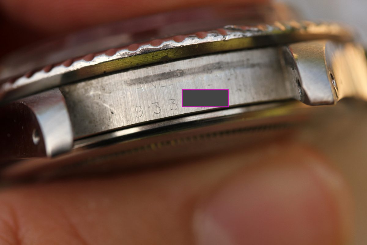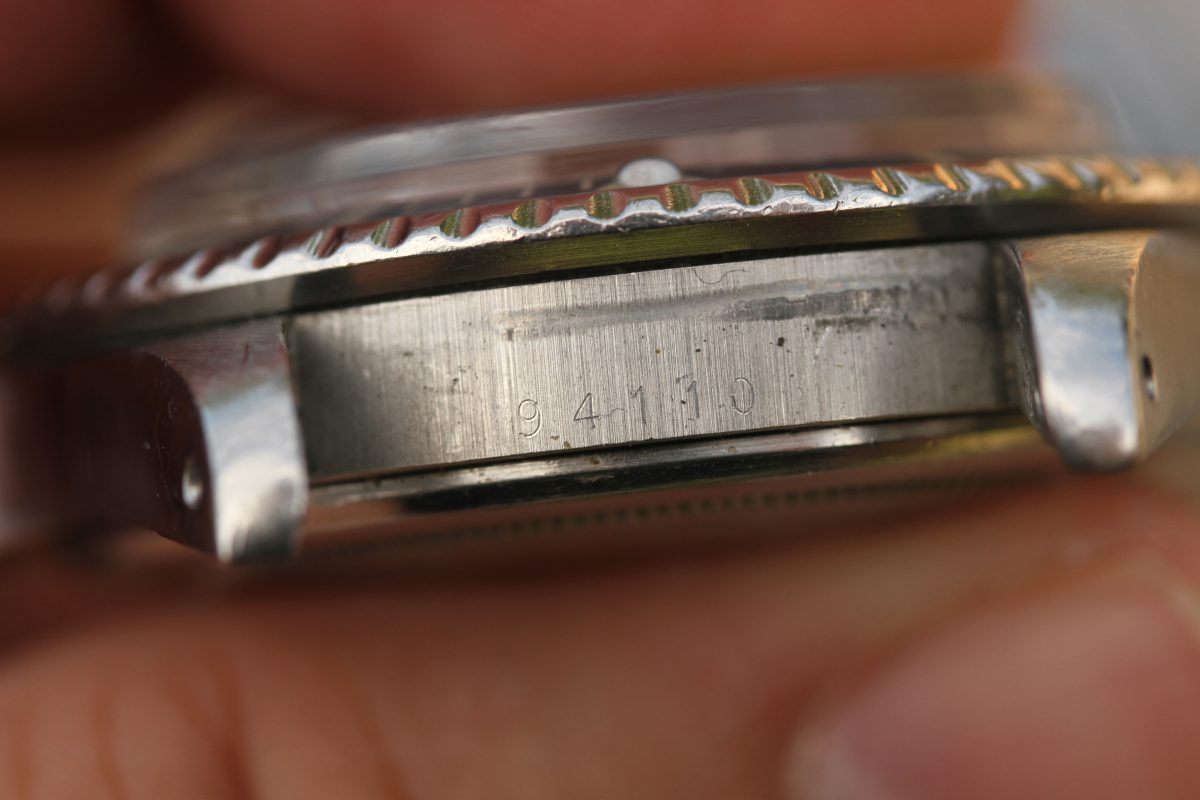 Bracelet is a Rolex 93150 with 10 links, diver’s extension, D date code on clasp, 580 ends.