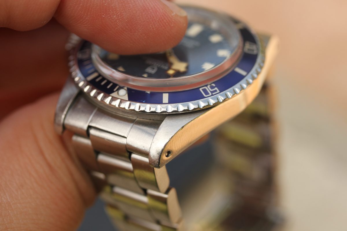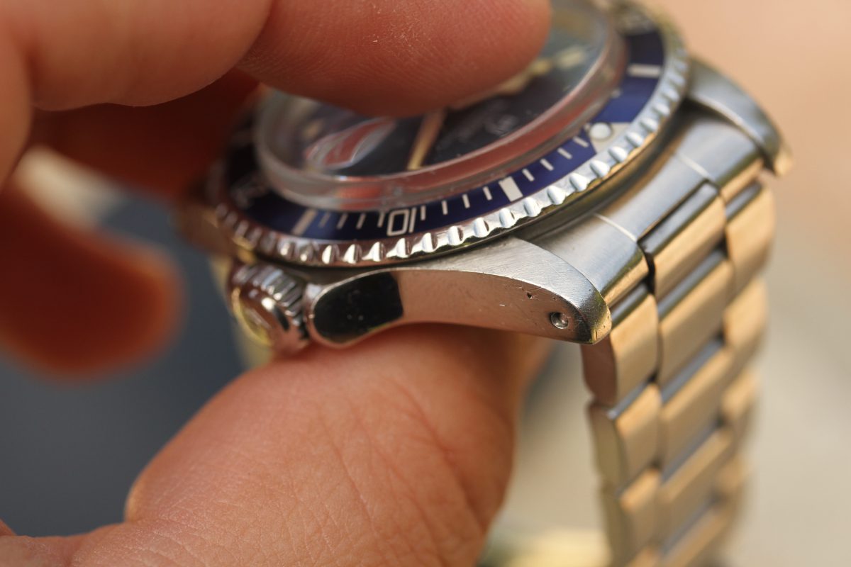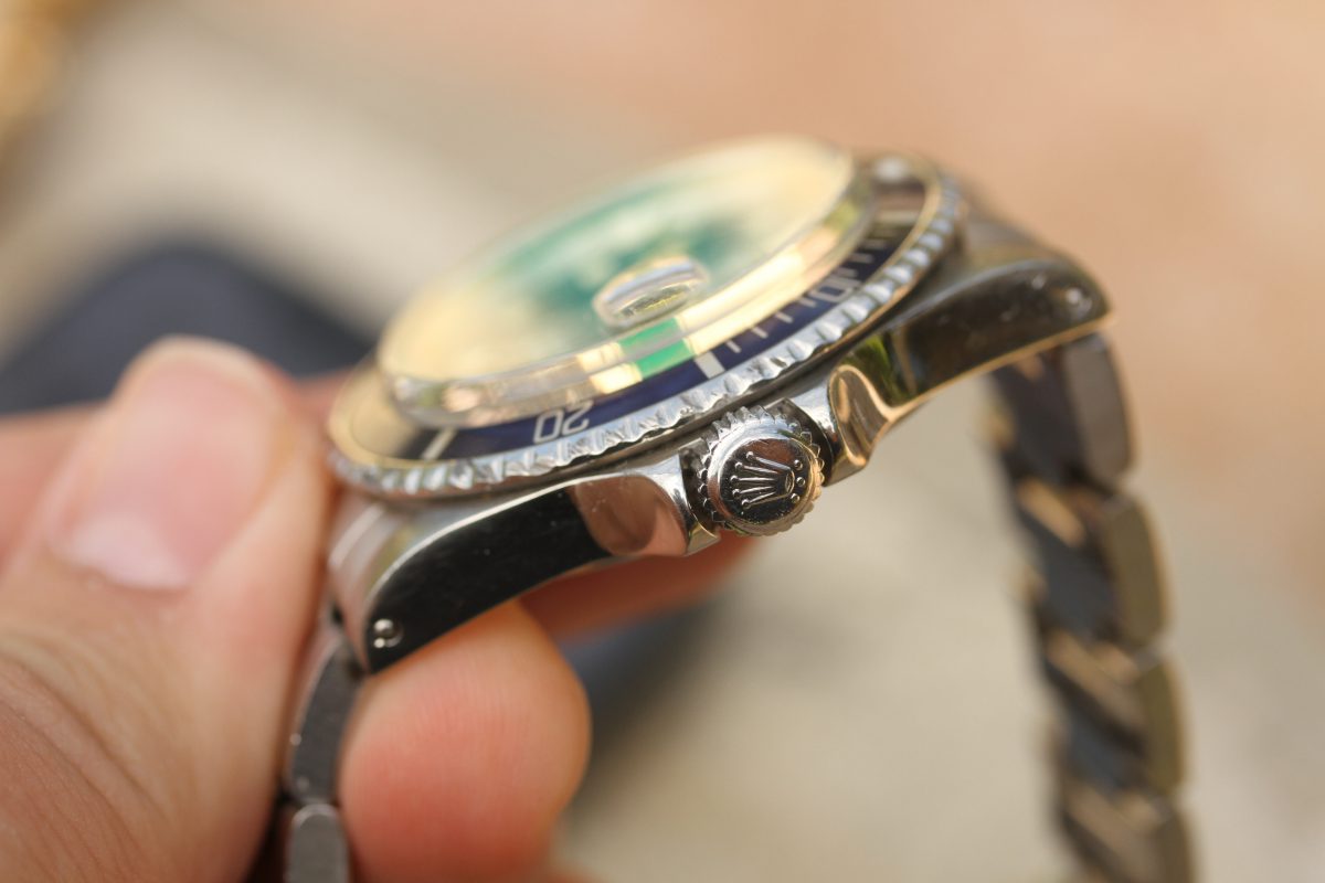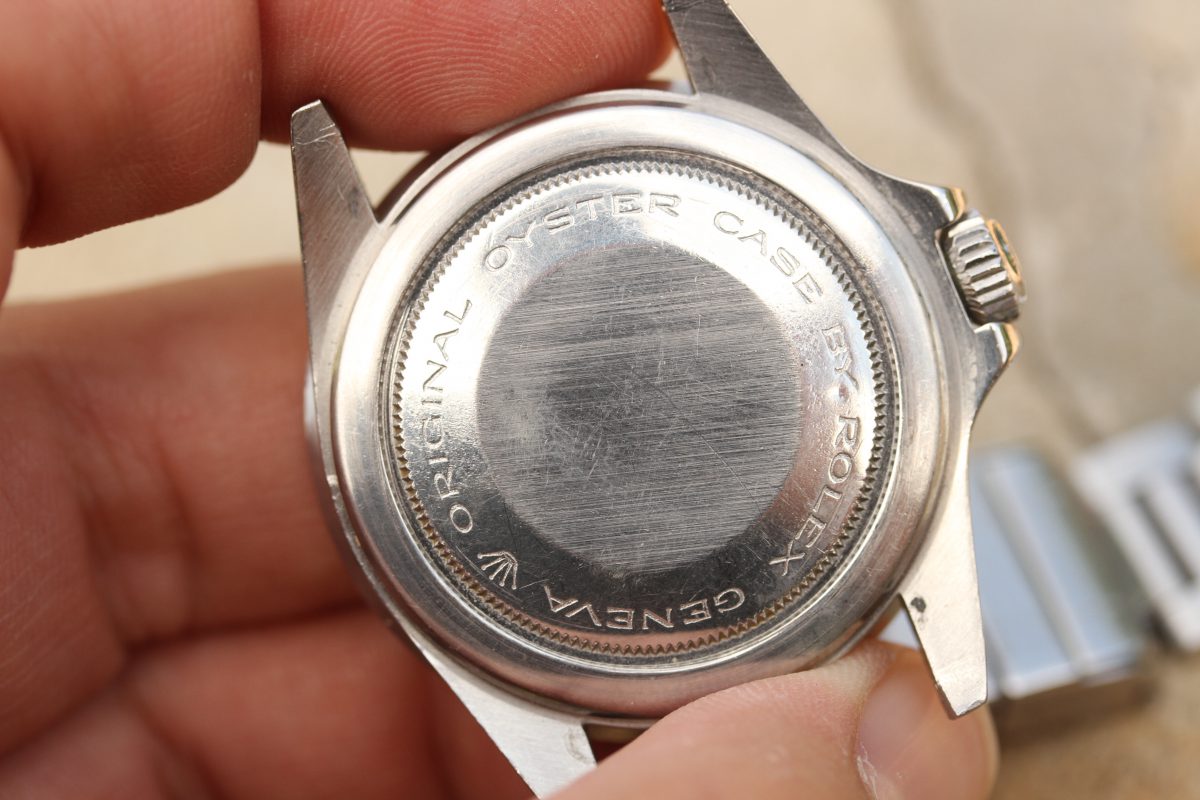 Bracelet is a Rolex 93150 with 10 links, diver’s extension, D date code on clasp, 580 ends.