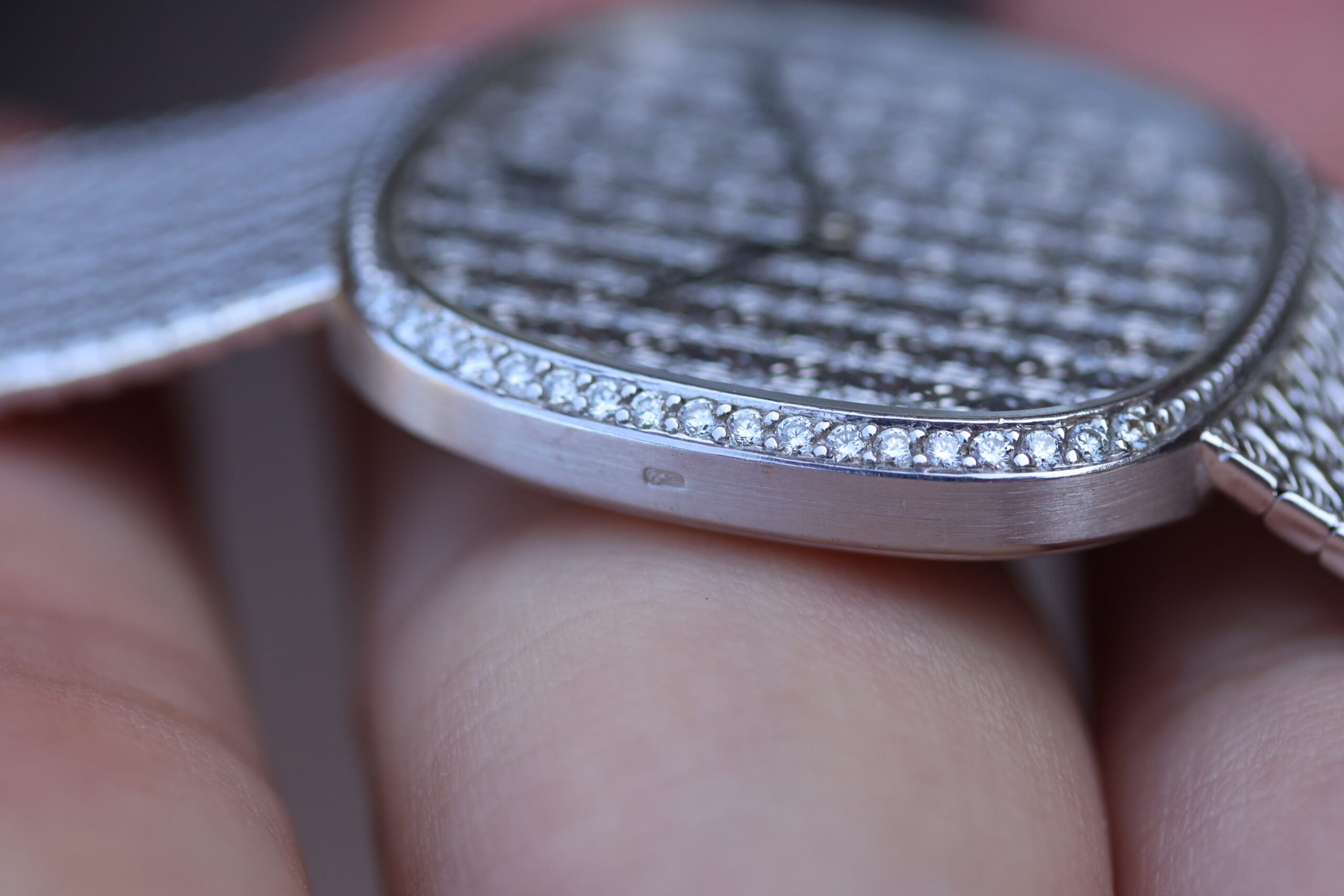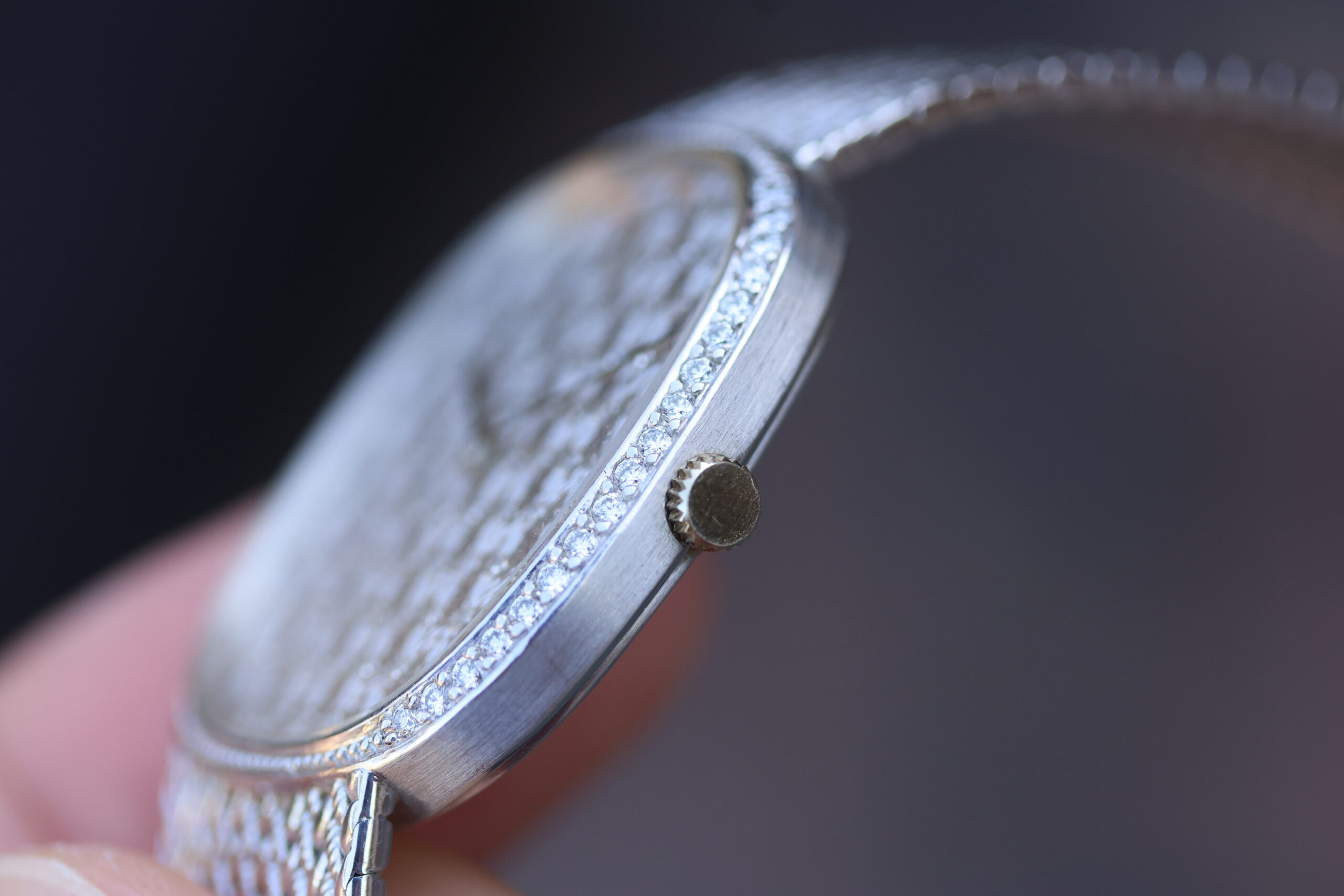 The bezel is also factory diamond-set