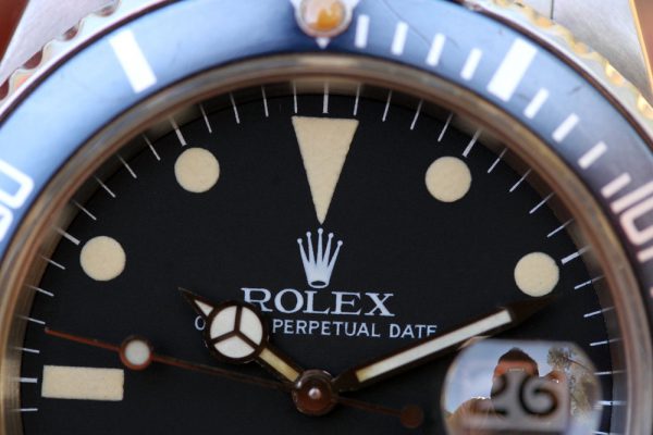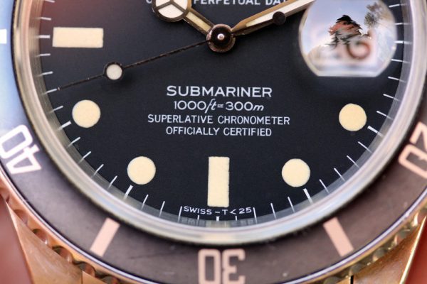 Dial is original, matte with cream patina throughout and matching tritium hands. No scratches, chips or else. Date disk with open 6’s and 9’s.