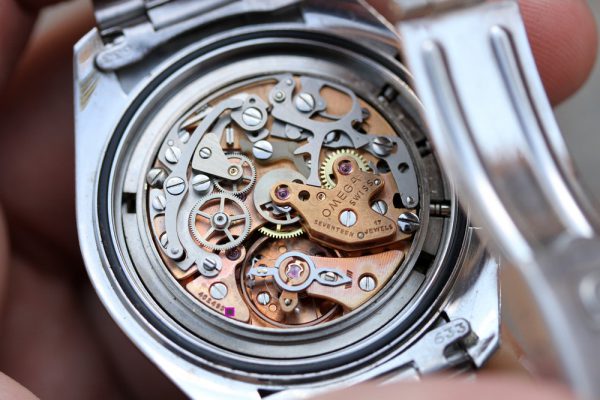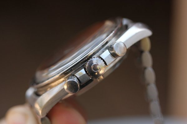 No box or papers. No documented service history. Chrono runs and stops and seconds and minute totalizers reset back to zero. The hour totalizer does not run. Watch runs and winds smoothly at -15 seconds per day with ~300 amplitude.