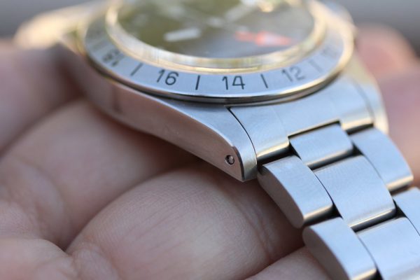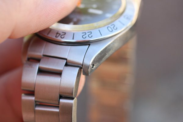 Dial is original, MK5 variation. Nice patina on plots, some of the tritium is chipped off from some of the markers. Original date disk with open 6’s and 9’s. The orange GMT hands has been replaced with luminova service replacement.