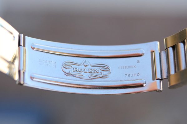 Bracelet is a correct Rolex 78360 with 580 ends, 12 links, period correct G date code, moderate stretch from use.