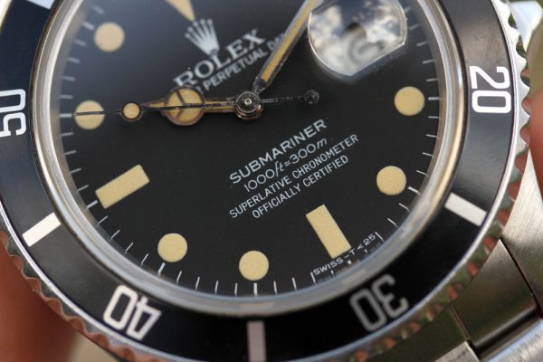 Dial is original, matte with very vivid yellow patina on plots and hands. No relume or refinish. No spots, chips, or damage.