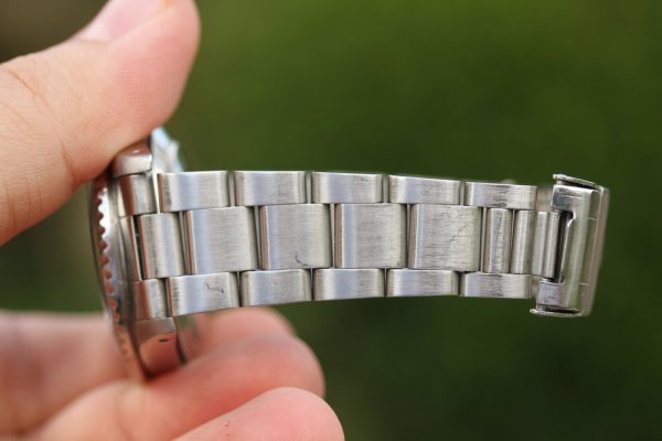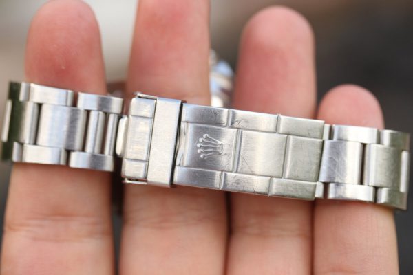 Bracelet is original Rolex 93150 with 11 links, H date code, light stretch, correct 593 ends.