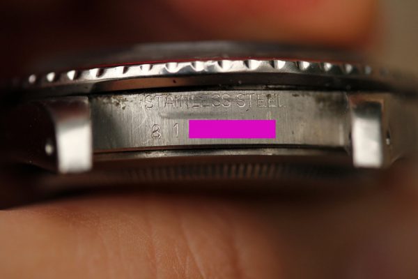 Excellent vintage condition case with thick and even lugs with sharp edges. No corrosion or pitting. Serial and reference numbers are fully intact and clearly visible.