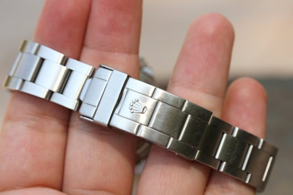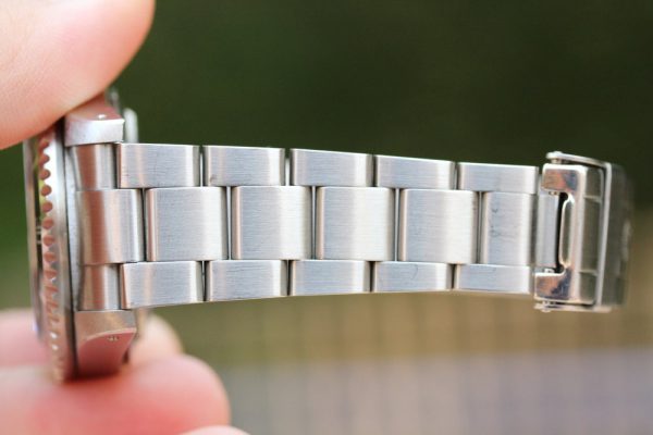 Bracelet is original 93160 with 592 end-links and fully linked bracelet with period correct date code on clasp. Very tight condition, original finish, without much signs of wear.
