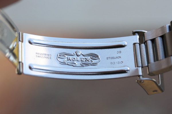 Bracelet is original Rolex 93150 with 593 ends, very tight and crisp. Engraved ETK on outer clasp with original owner’s initials. J date code is period correct and original to the watch.