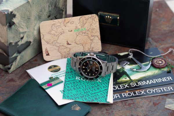 Very complete set with Rolex boxes, manuals, hang tags, anchor, etc. The box has a “16800” sticker.