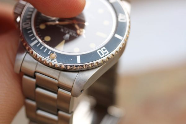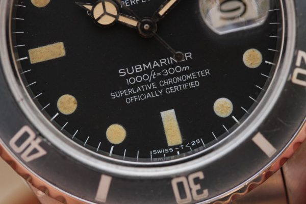 Bezel insert is original and very attractive with “ghost” fading with blue hue. Tritium pearl with vivid patina.