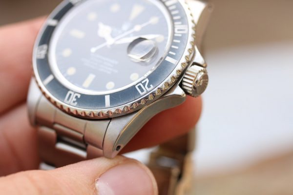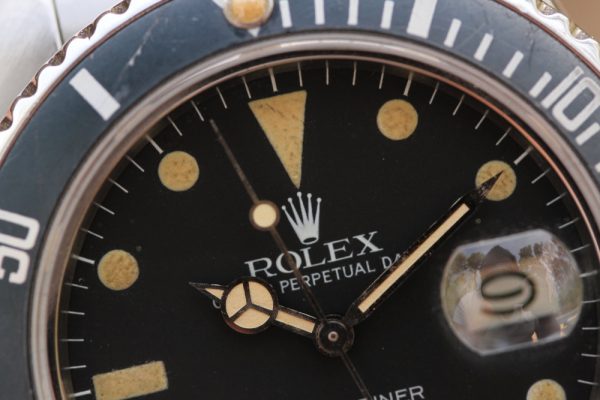 Dail is original, matte with very attractive and vivid yellow patina. The hands were matched to the dial with non-luminous relume. Original date disk with open 6’s and 9’s.