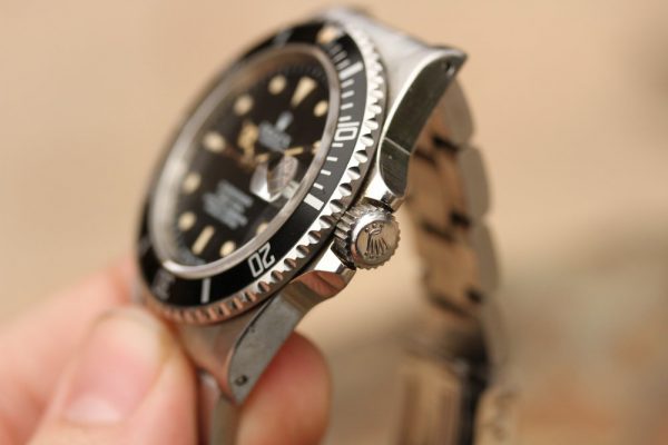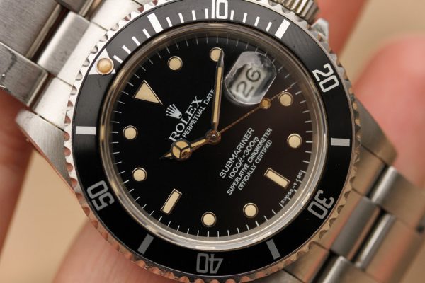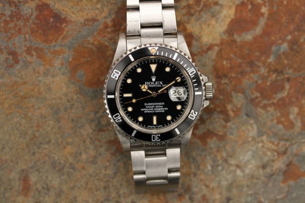 Dial is fantastic glossy with heavy cream patina on plots and matching hands. The seconds hand is original and shows some aging/corrosion. Original date disk with open 6’s and 9’s.