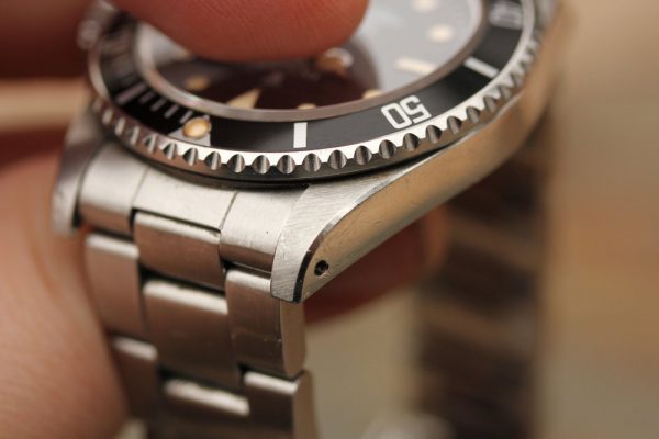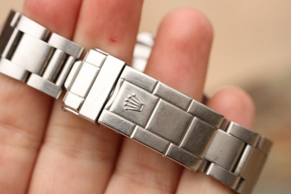 Bracelet is a Rolex 931350 with 593 ends, tight condition, factory finish, 10 links, diver’s extension, and correct I date code on clasp.