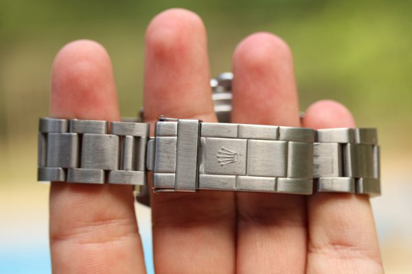 Bracelet is a Rolex 93150 with 11 links, L date code, light stretch from use. One of the end-links is aftermarket replacement, other one is original 593.