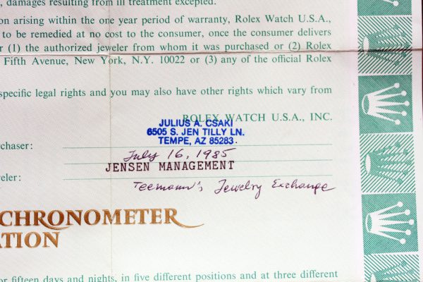 Bracelet is original GMT Jubilee with “50” last links. As stated on papers, this bracelet came factory on this particular watch.