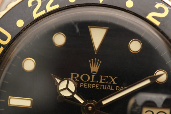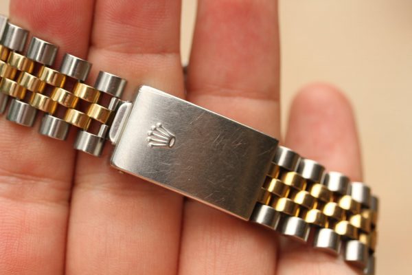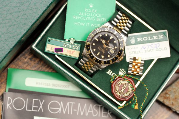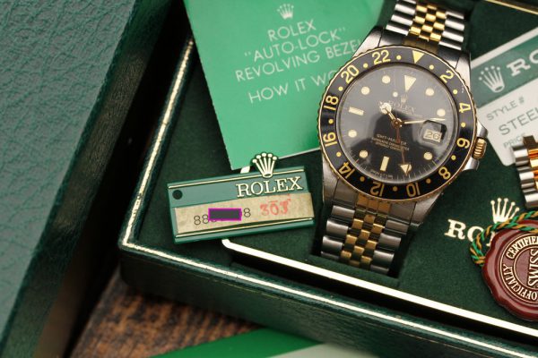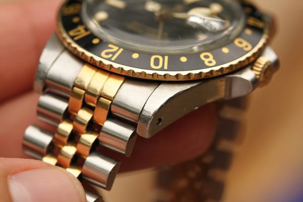 Bracelet is original Rolex 62513 in steel and 18kt gold and has correct “50” stamped last link for GMT-Masters. The papers also confirm that this watch was born with Jubilee bracelet.