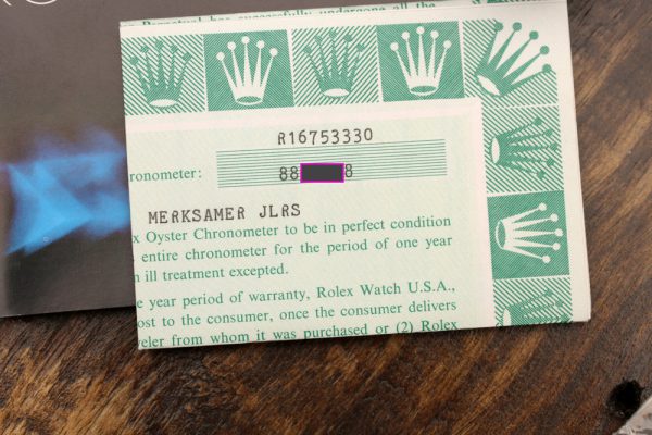 The watch comes very complete with Rolex boxes, manuals, warranty papers, both matching hang tags, and box sticker, as well as extra links.