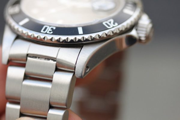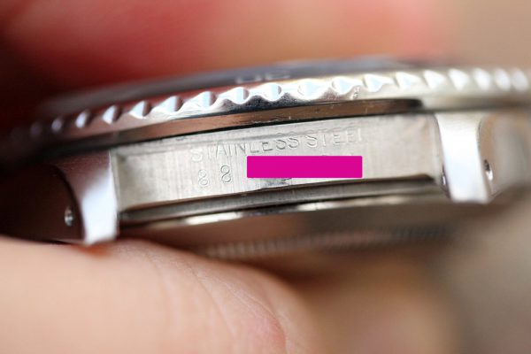 Excellent vintage condition case has previously been polished, but still retains thick and even lugs and crown guards. Serial and reference numbers are fully intact and clearly visible.