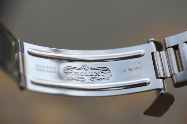 Rolex 93150 bracelet with 12 links, 593 ends, DE date code, diver’s extension and moderate stretch from use.