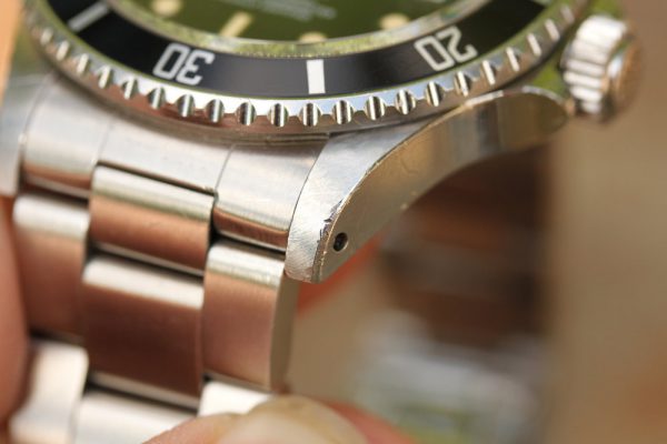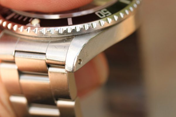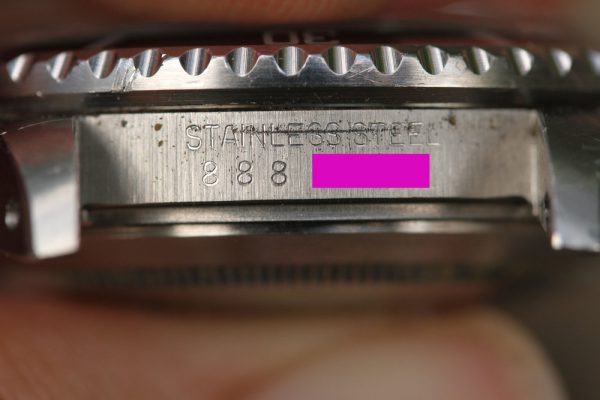 Excellent vintage condition case is clearly unpolished. Serial and reference numbers are fully intact and clearly visible. Caseback hologram sticker is still mostly intact.