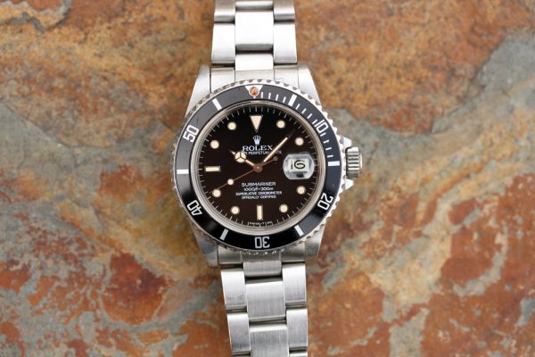 Dial is original, tritium, with very heavy cream patina on plots and hands. No spidering, corrosion, on scratches on dial. Hands are original and tritium. Date disk with open 6’s and 9’s.