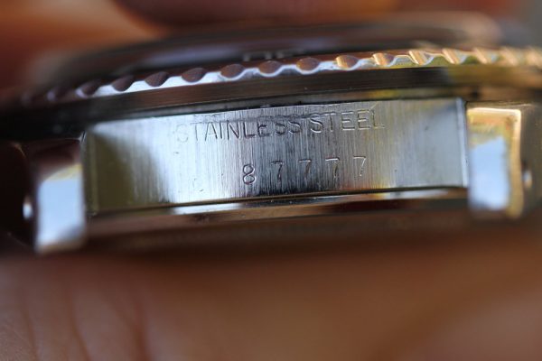 Excellent vintage condition case with even lugs and crown guards. Serial and reference numbers are fully intact and clearly visible.