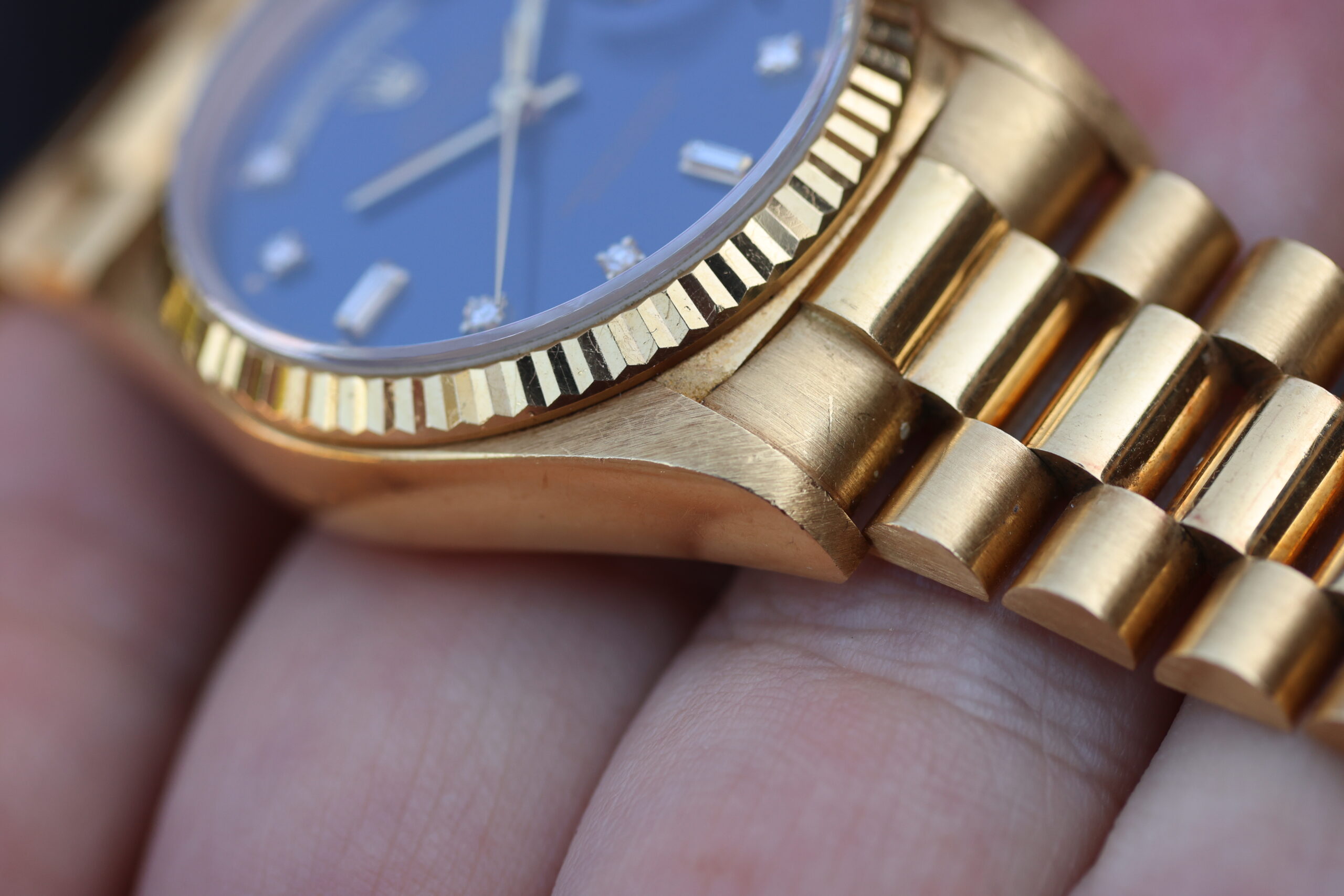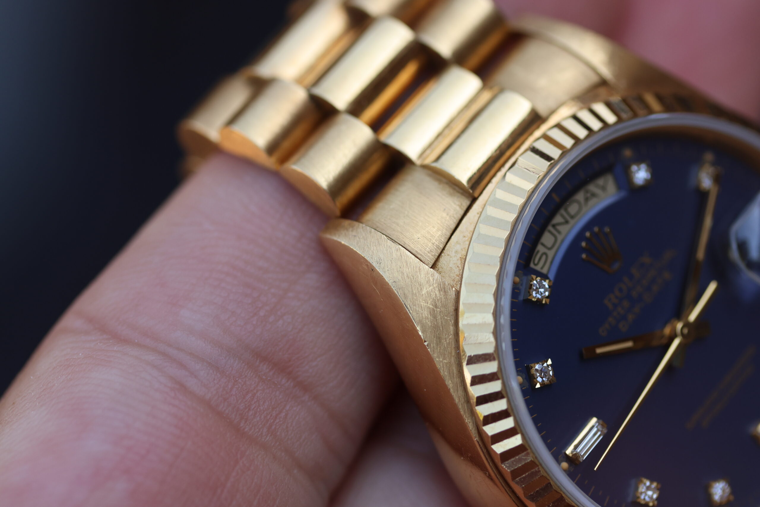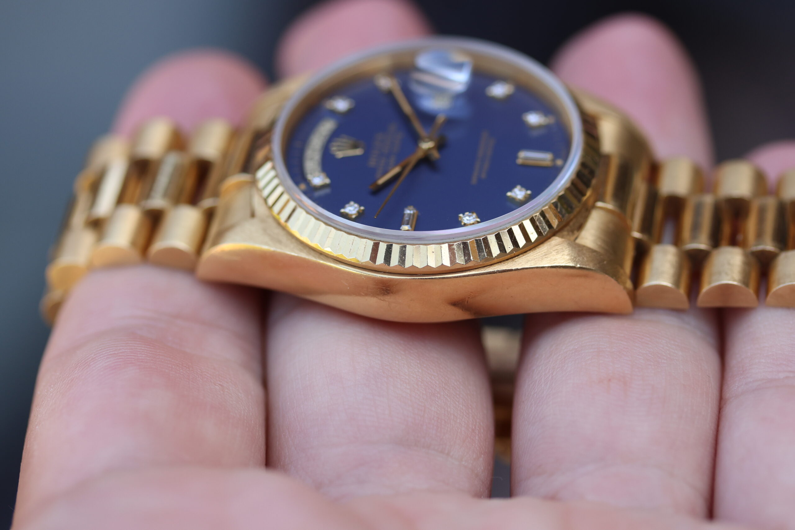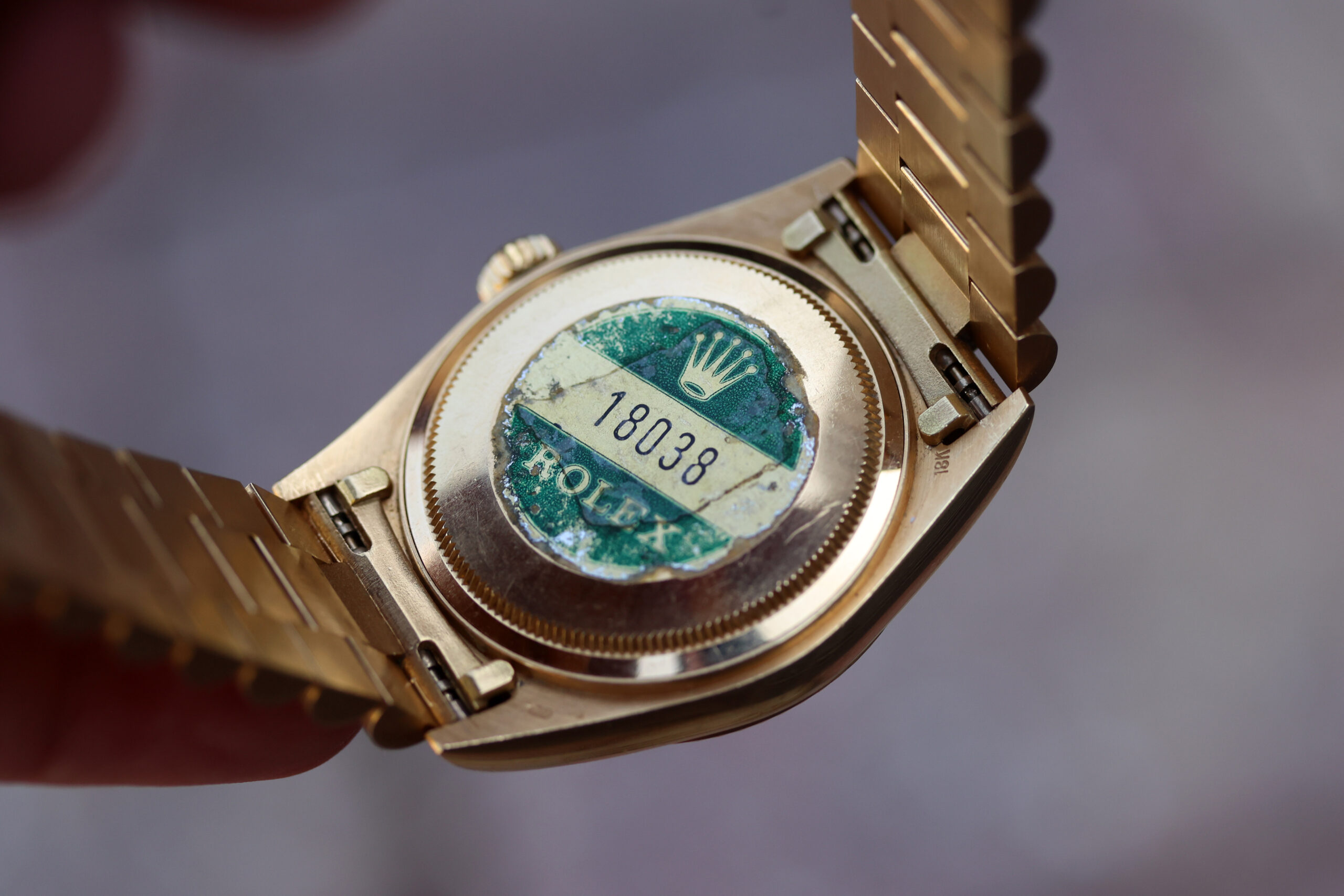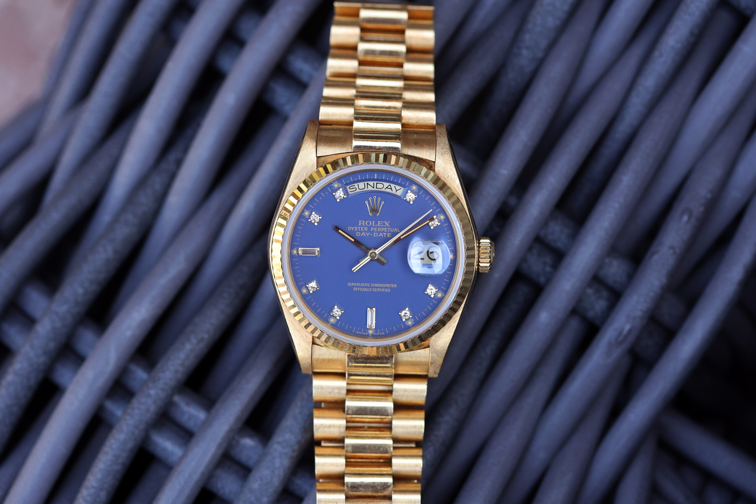 Up for grabs is a Rolex Day-Date in 18kt yellow gold