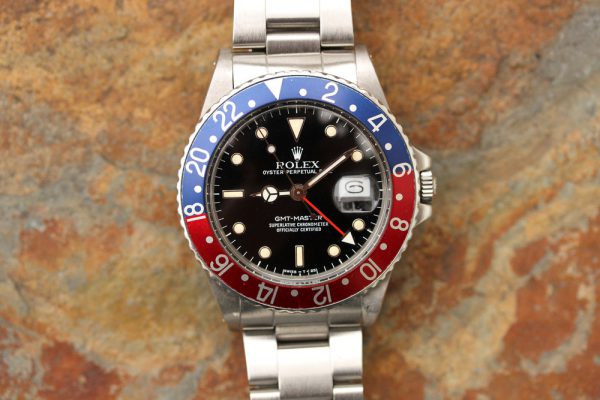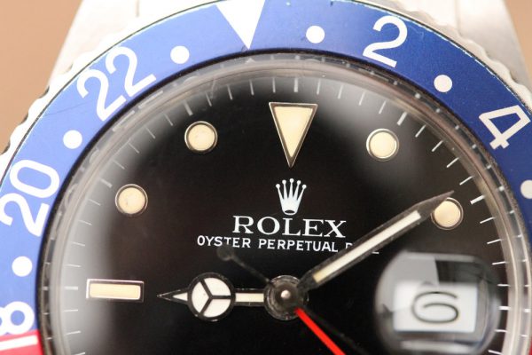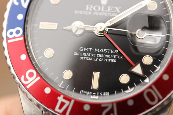 Dial is original, tritium with glossy finish. There is no cracking or “spidering” in the lacquer. Nice cream patina on all plots. Hands are original and tritium and show a very slightly lighter color than plots, but looks great in person and pictures. Correct original date disk with open 6’s and 9’s.