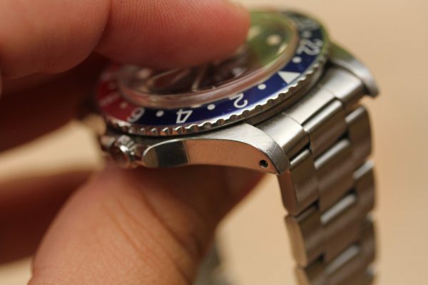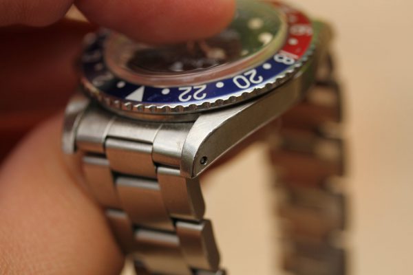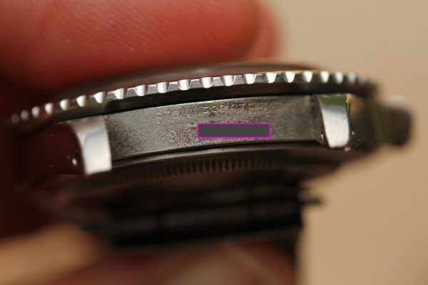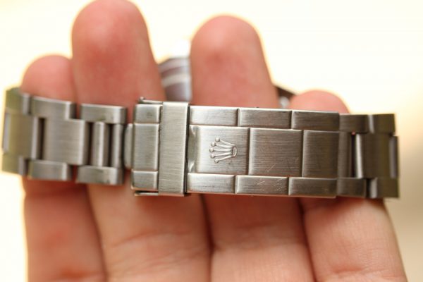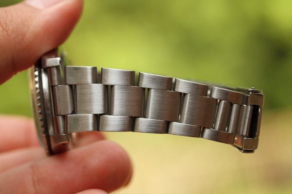 Bracelet is a Rolex 93150 with 593 ends, M date code, light stretch, 11 links with diver’s extension.