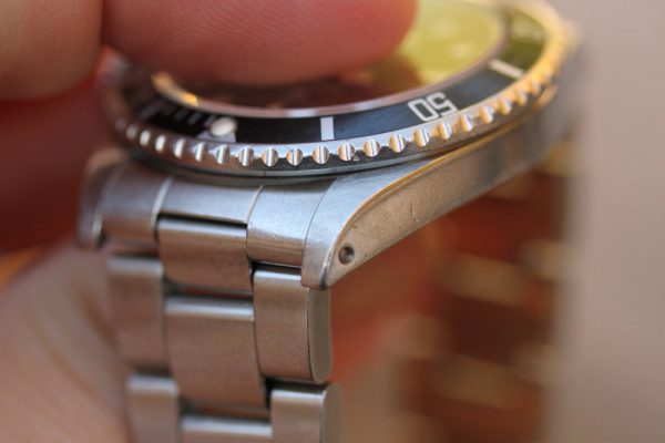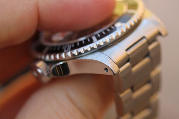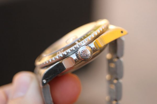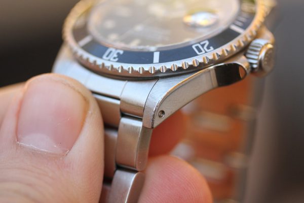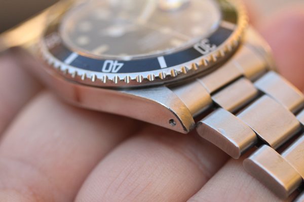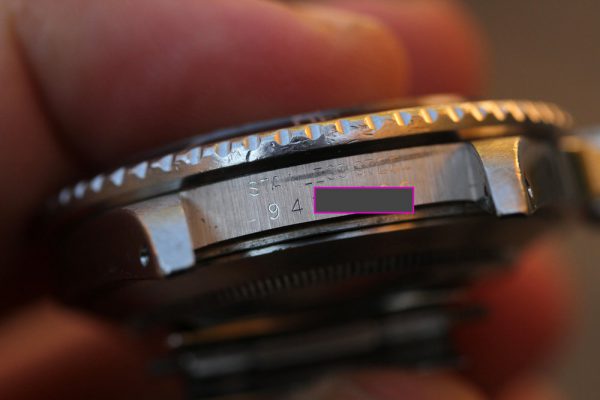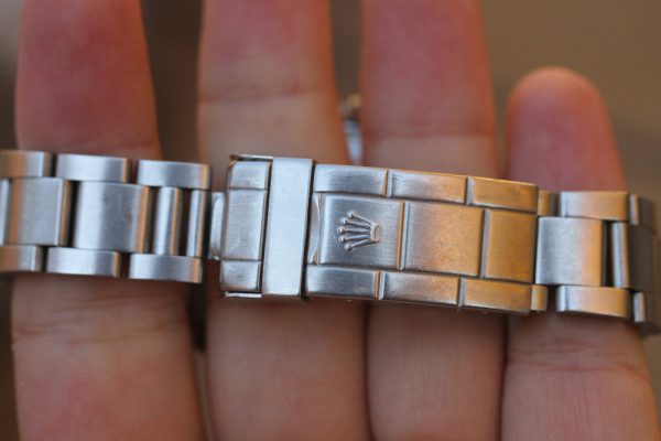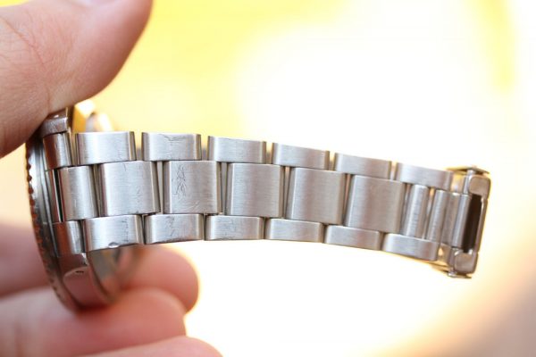 Bracelet is original Rolex 93150 with light stretch from use, 11 links, diver’s extension and 593 ends. Correct K date code.