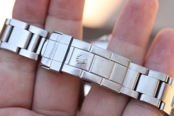 Bracelet is original Rolex 93150 with 12 links, 580 ends, X date code, moderate/normal stretch from use.
