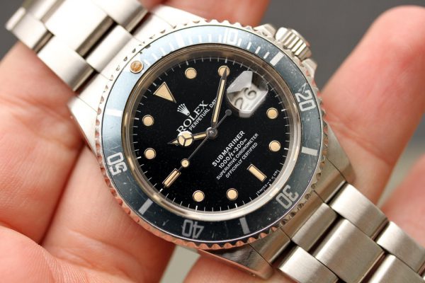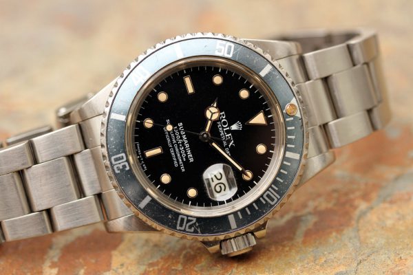 Dial is original, tritium with strong and very attractive cream patina on plots and original tritium hands. Original date disk with open 6’s and 9’s.