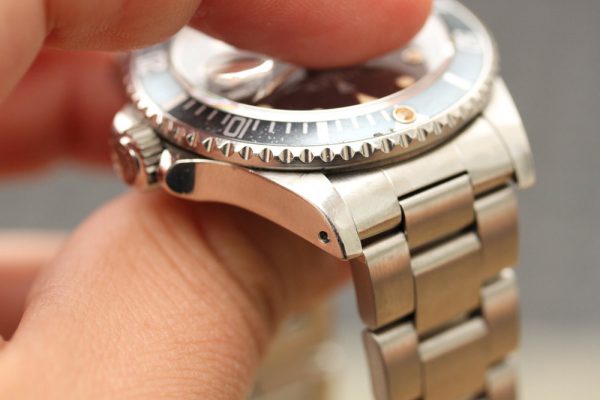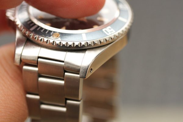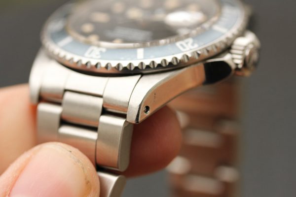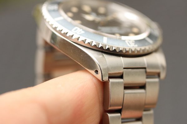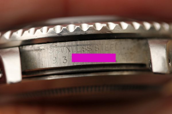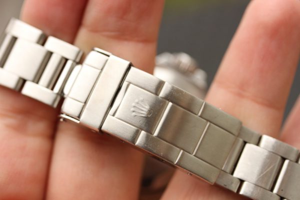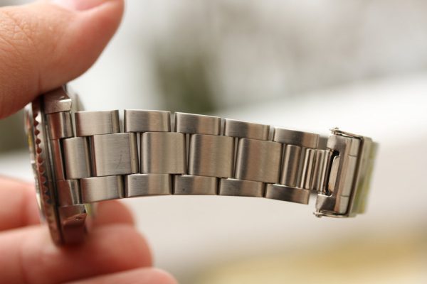 Bracelet is 93150 Rolex bracelet with 12 links, diver’s extension, 593 ends, slight stretch from use and H date code on clasp.
