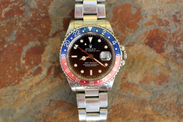 Up for grabs is a Rolex GMT-Master in steel