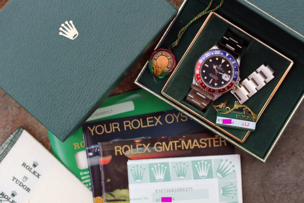 Watch comes very complete with Rolex boxes, manuals, warranty papers dated in 1989 and matching hang tags. The watch has been found from original and living owner in Chicago area, who bought it new from an IL AD. Very honest and untouched, complete set.