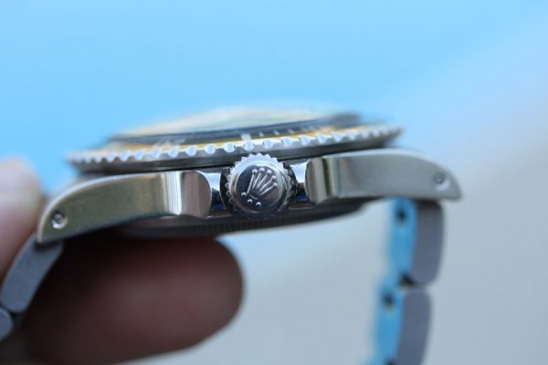 Bracelet is a Rolex 93150, extremely nice condition with barely any stretch at all, 12 links, diver’s extension, 580 ends, correct N date code on clasp.