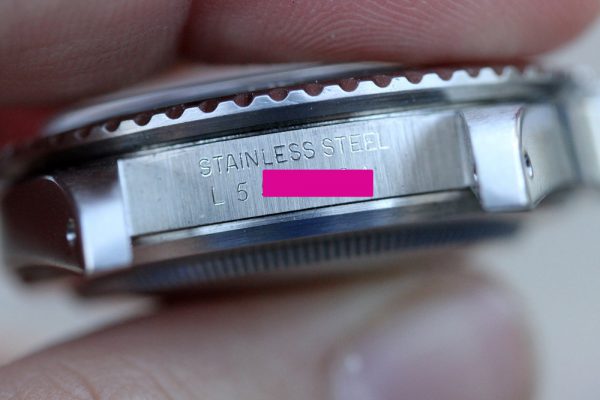 Excellent used condition case with thick and even lugs. Original chamfers are clearly visible. Serial and reference numbers are fully intact and very clearly visible. Thick and sharp crown guards.