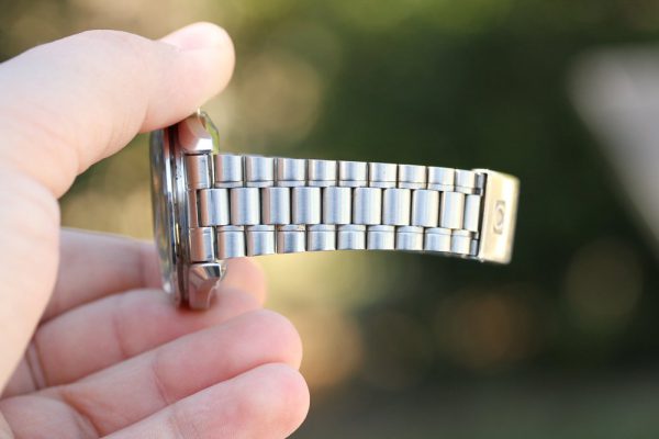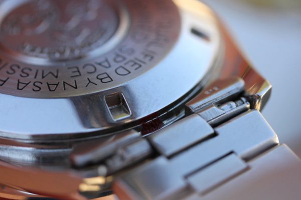 Crystal is original, without the Omega logo in center. This is correct and original for Speedmasters from 1991-1992 production only. Minor surface scratches from use.