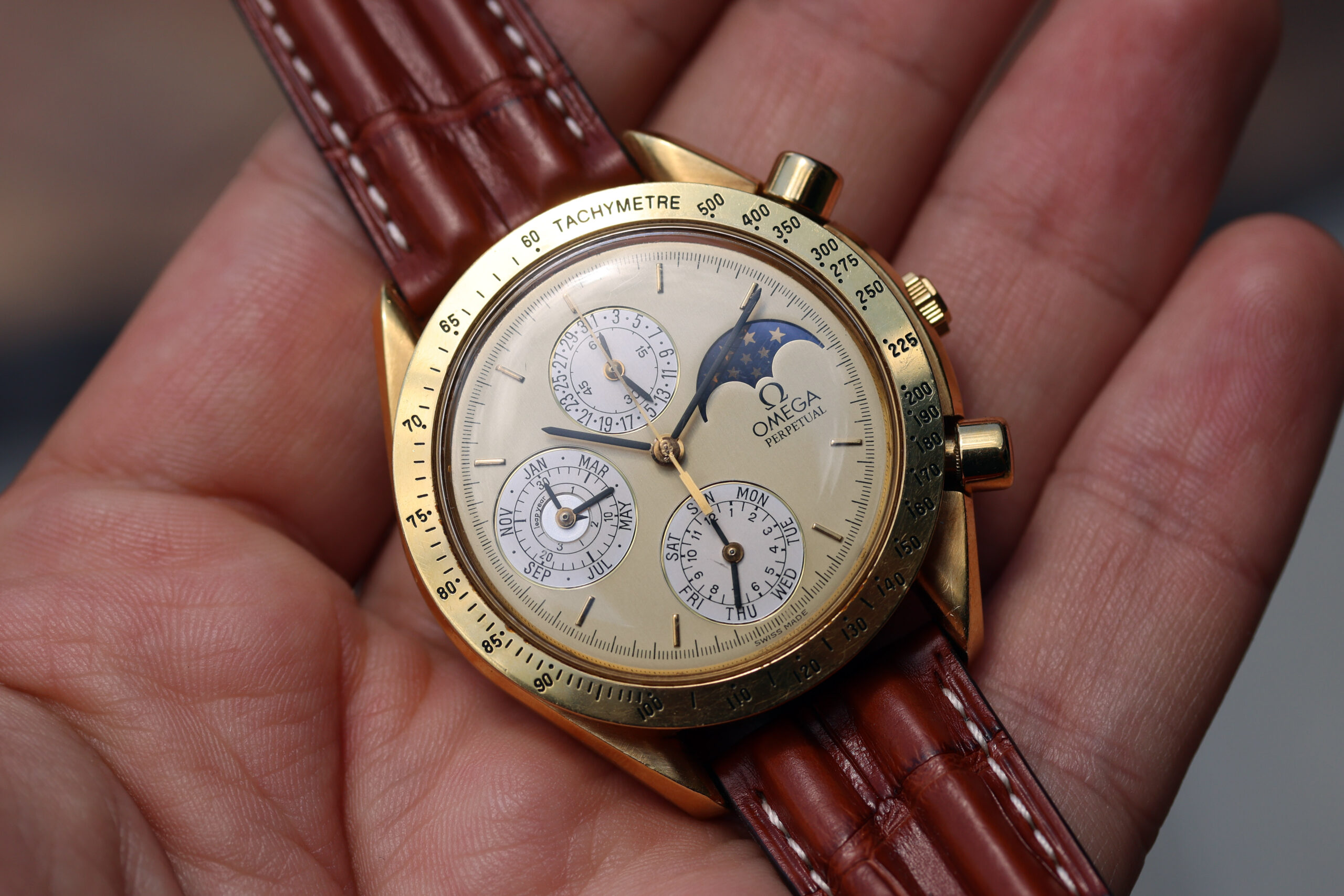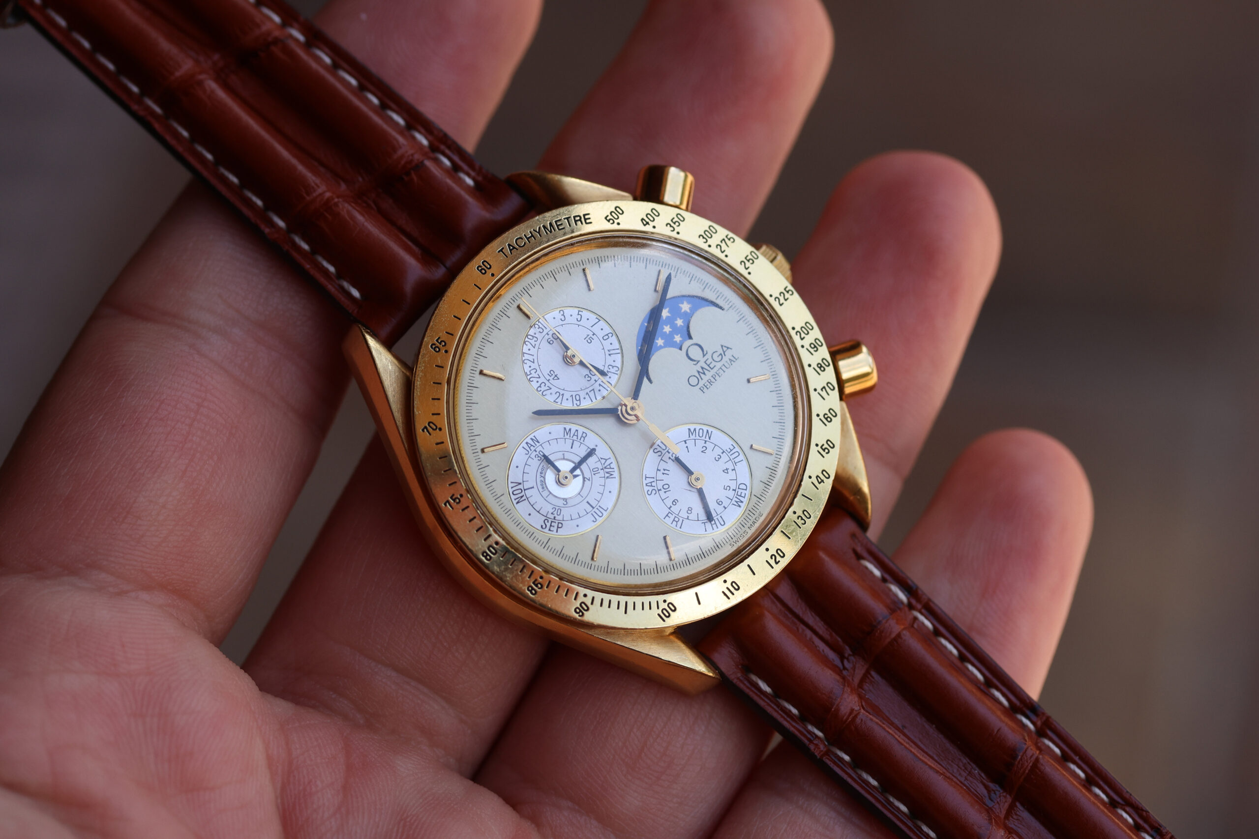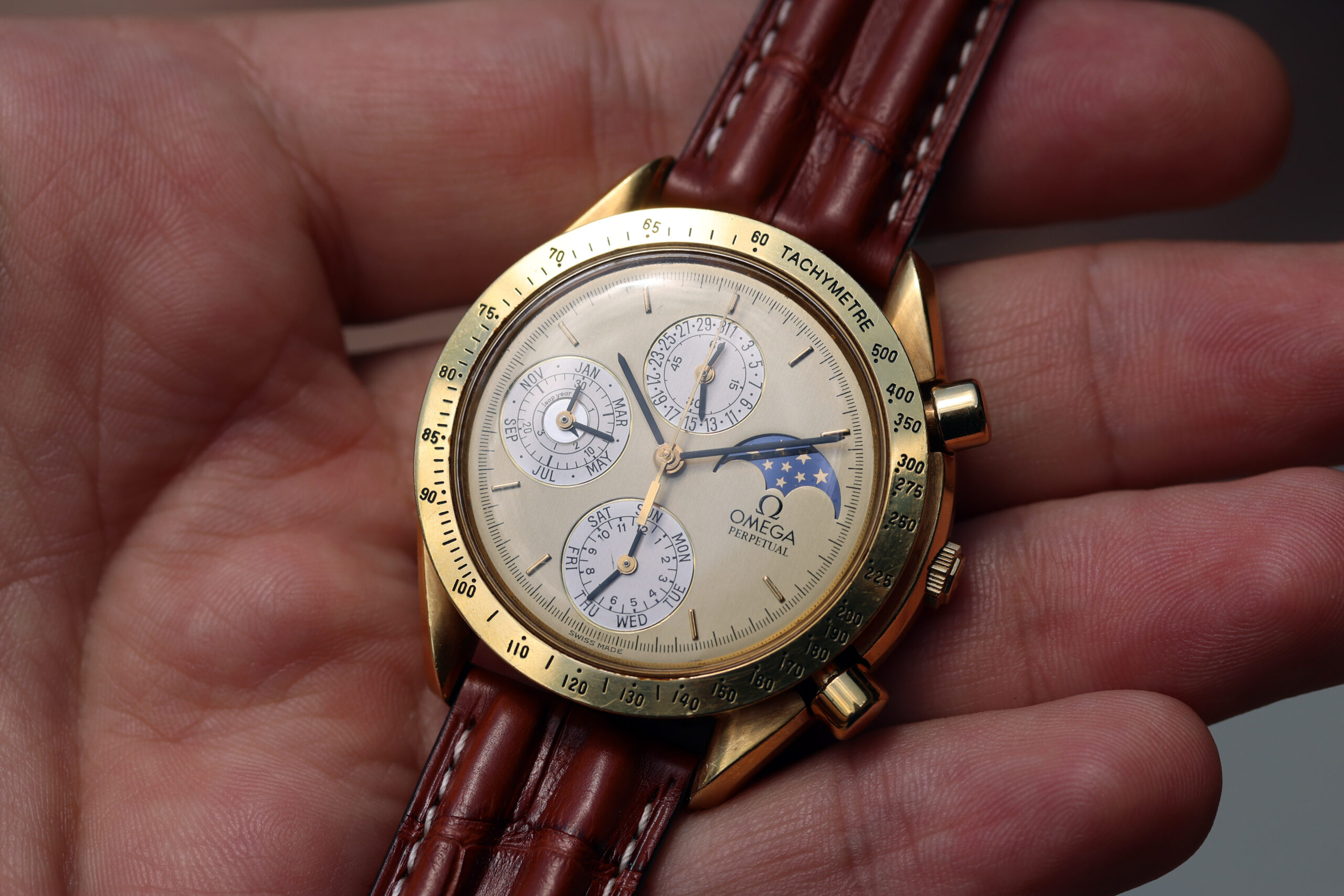 Up for grabs is an Omega Speedmaster Perpetual Calendar