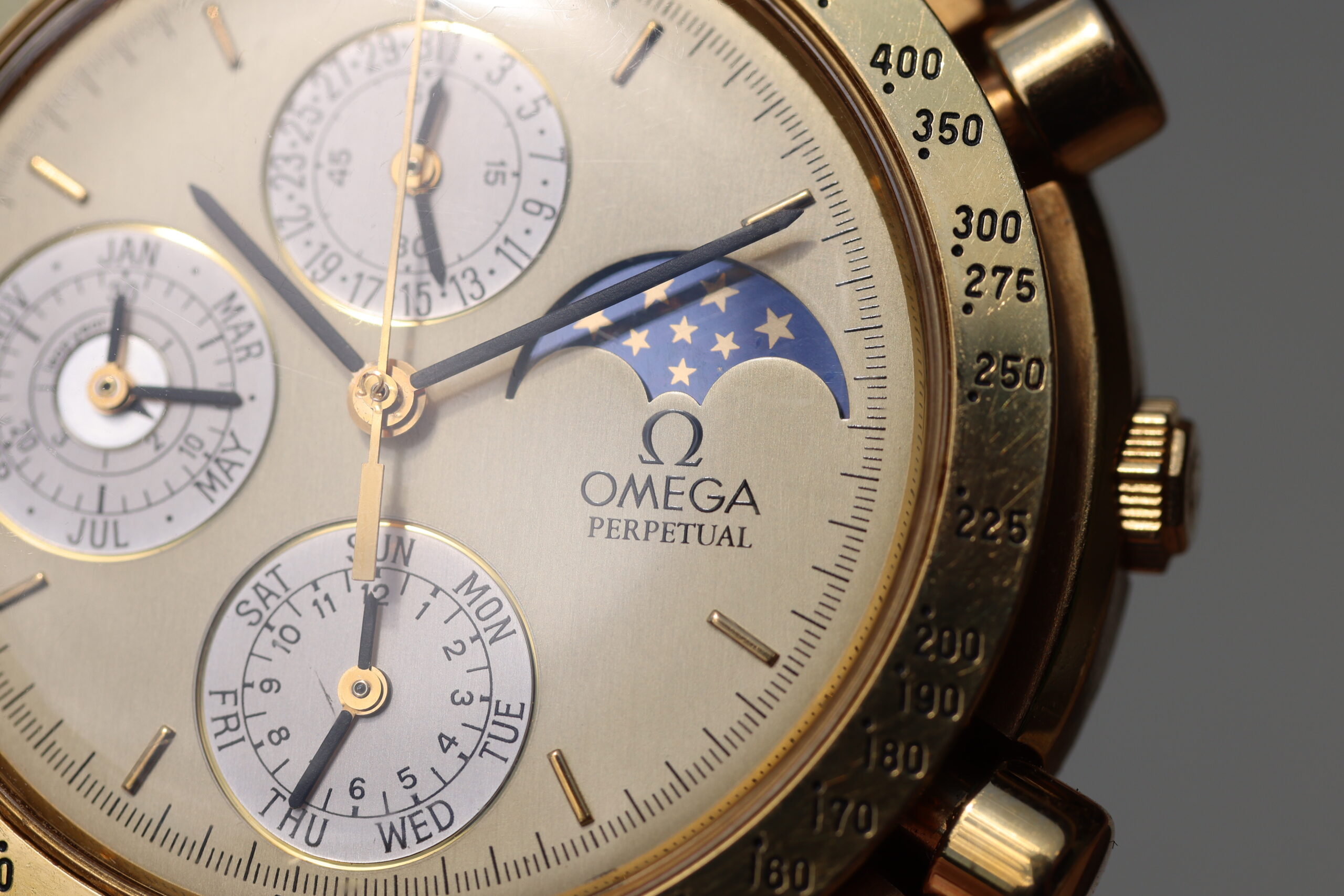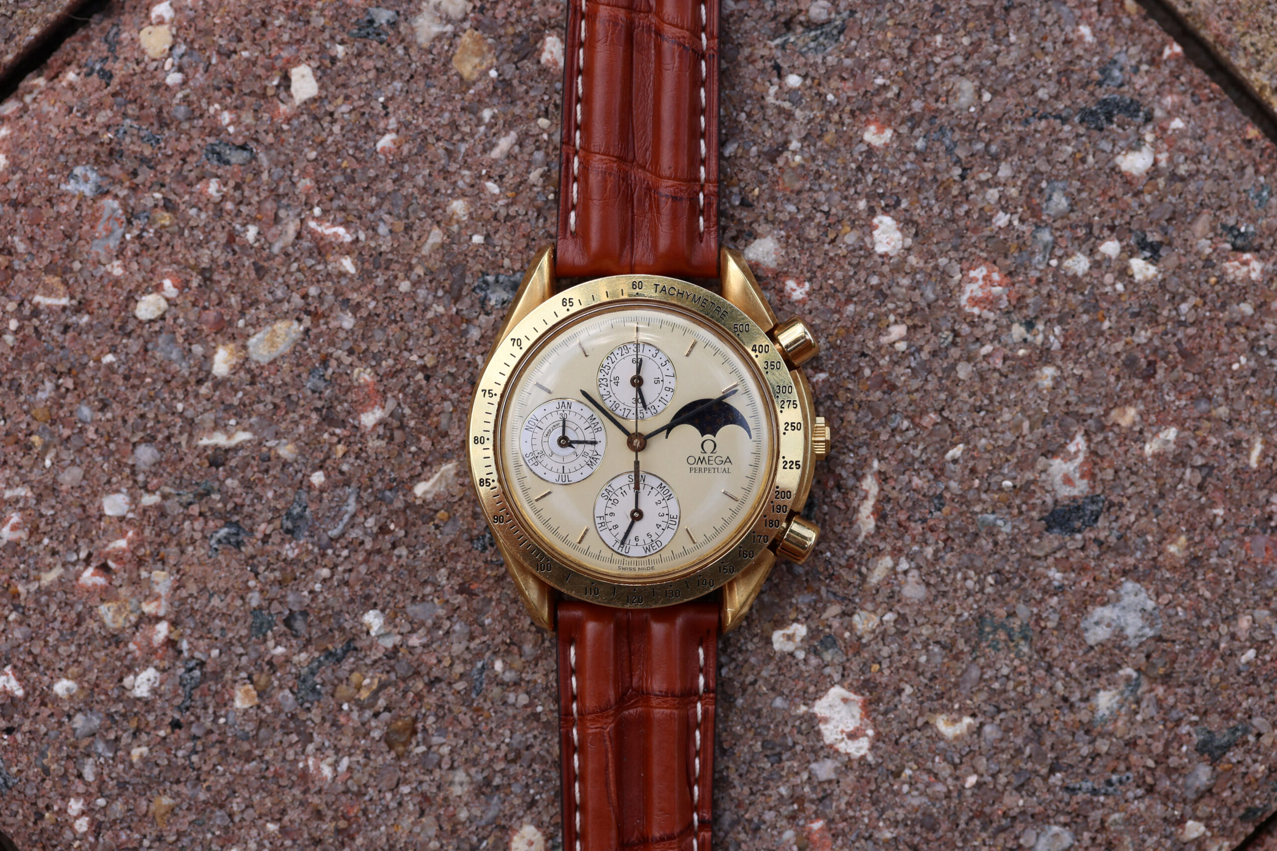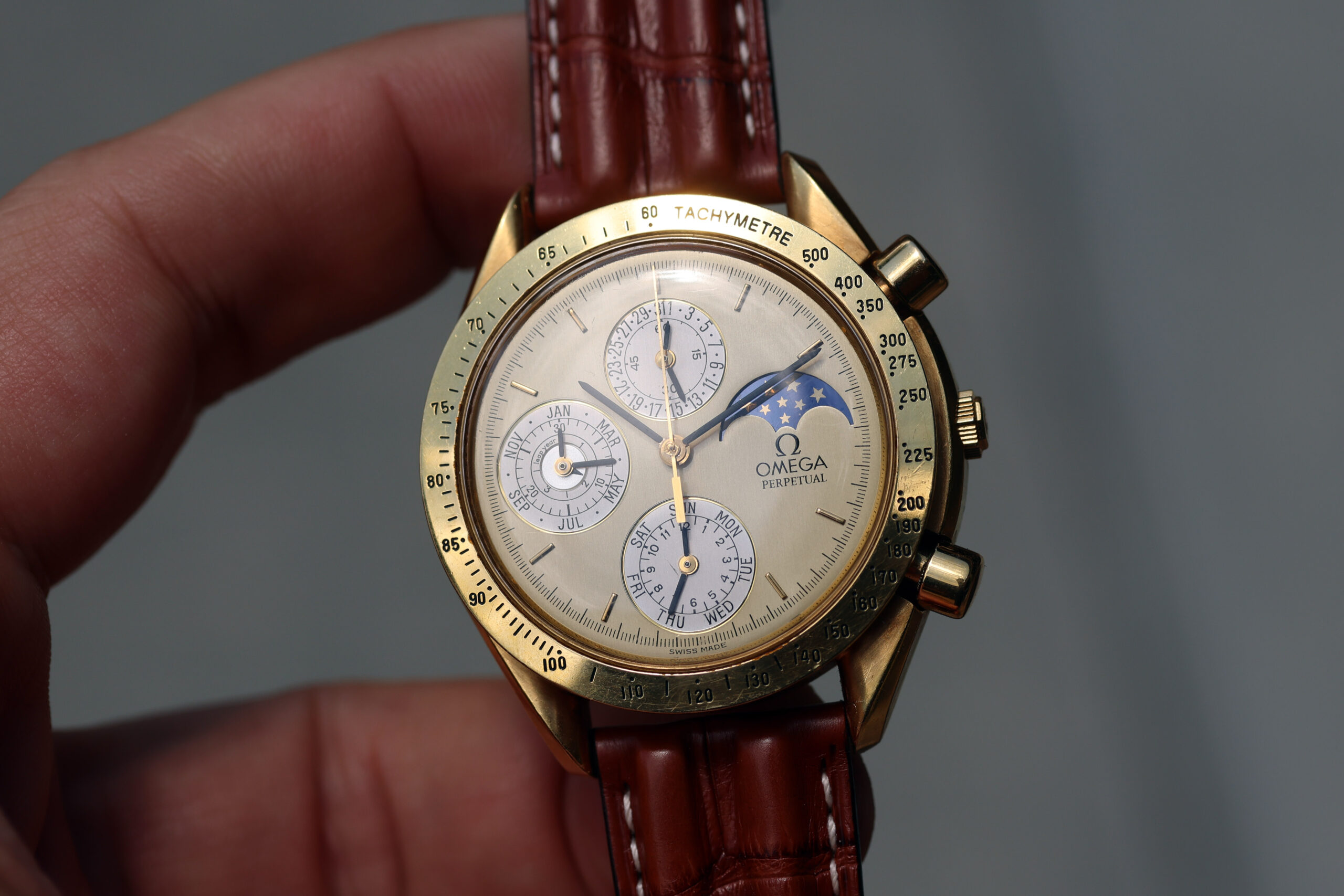 Up for grabs is an Omega Speedmaster Perpetual Calendar
