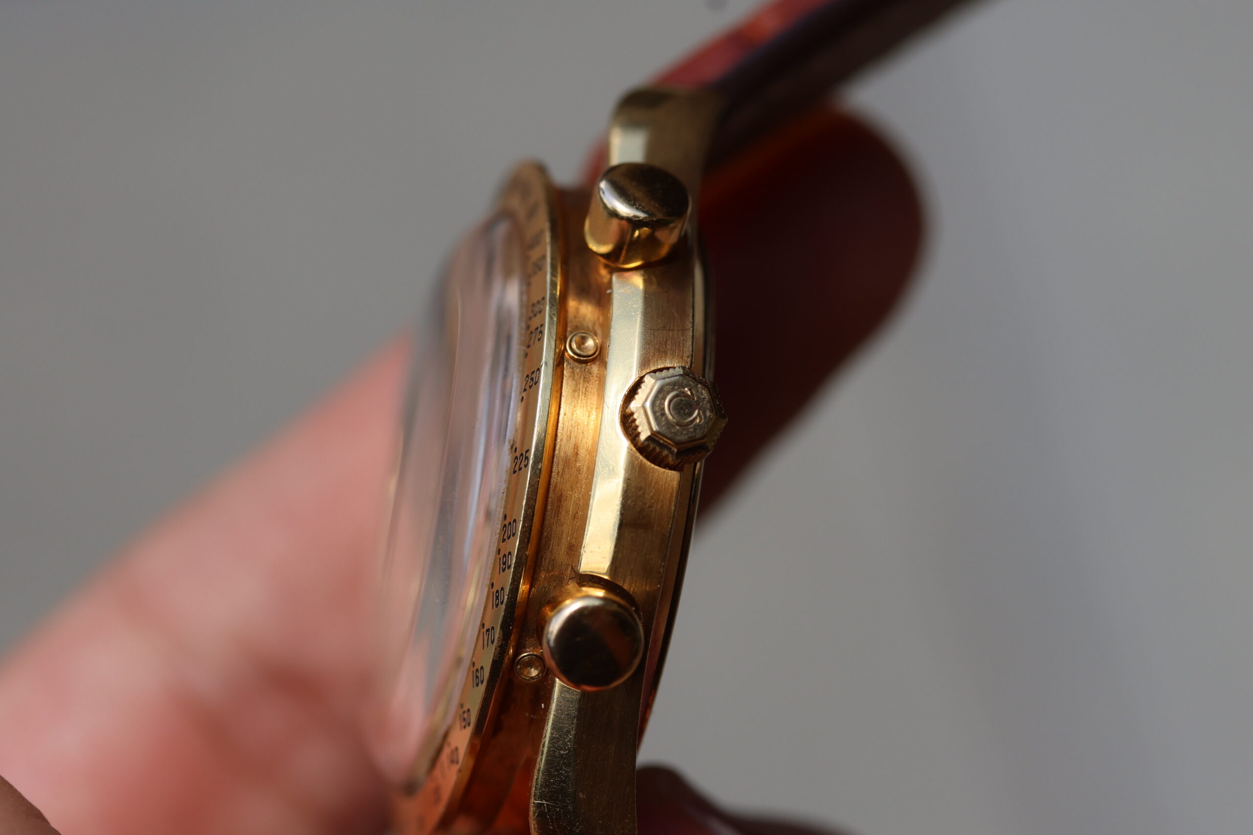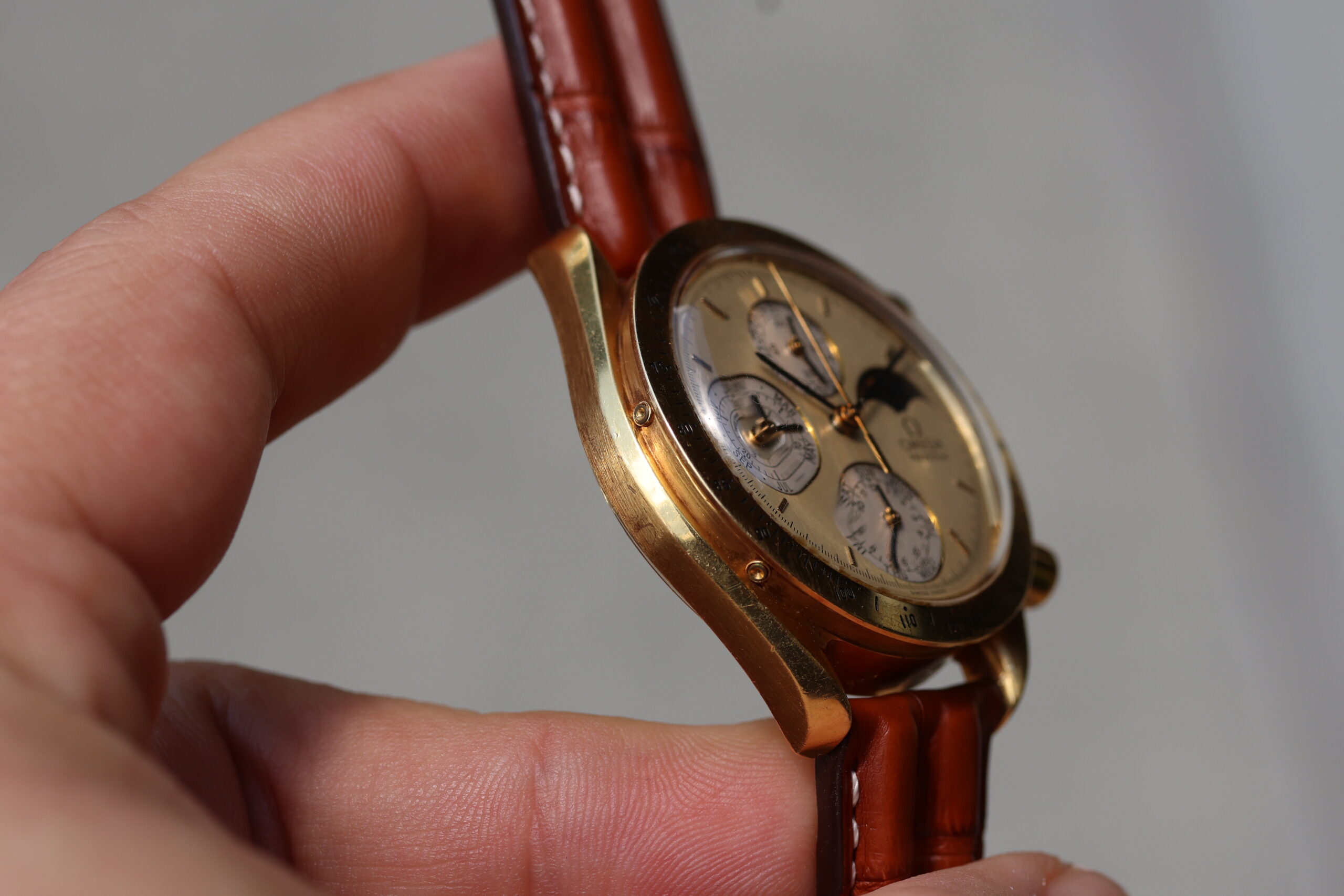 The watch comes on unworn Omega strap with original solid gold Omega buckle.